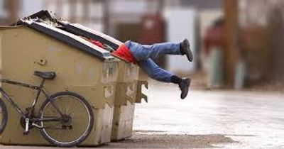 Our protagonist graduates at the top of his class. Company after company vies to win him as an employee, and he eventually accepts a privileged peach position at a top-notch place. For a while he is flying, but just as suddenly the corporate mobsters turn on him, and his whole world collapses. For four days afterward he has not risen from bed except for lurches to the bathroom and the liquor cabinet. But then there is the sound of metal hitting the sidewalk again and again right outside his window. With bloodshot eyes he peers down at the little Mexican kid in a dumpster fishing for beer cans and tossing them over the side. A confrontation ensues.